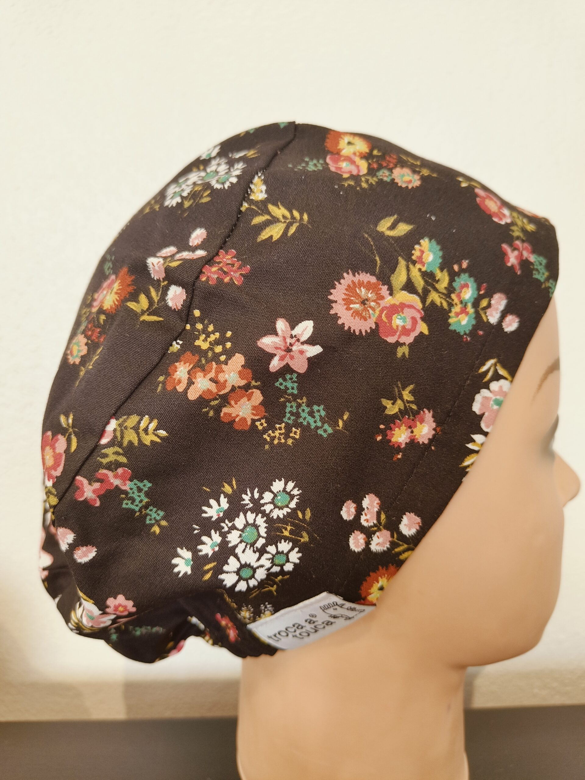 Touca cirúrgica floral elástico.