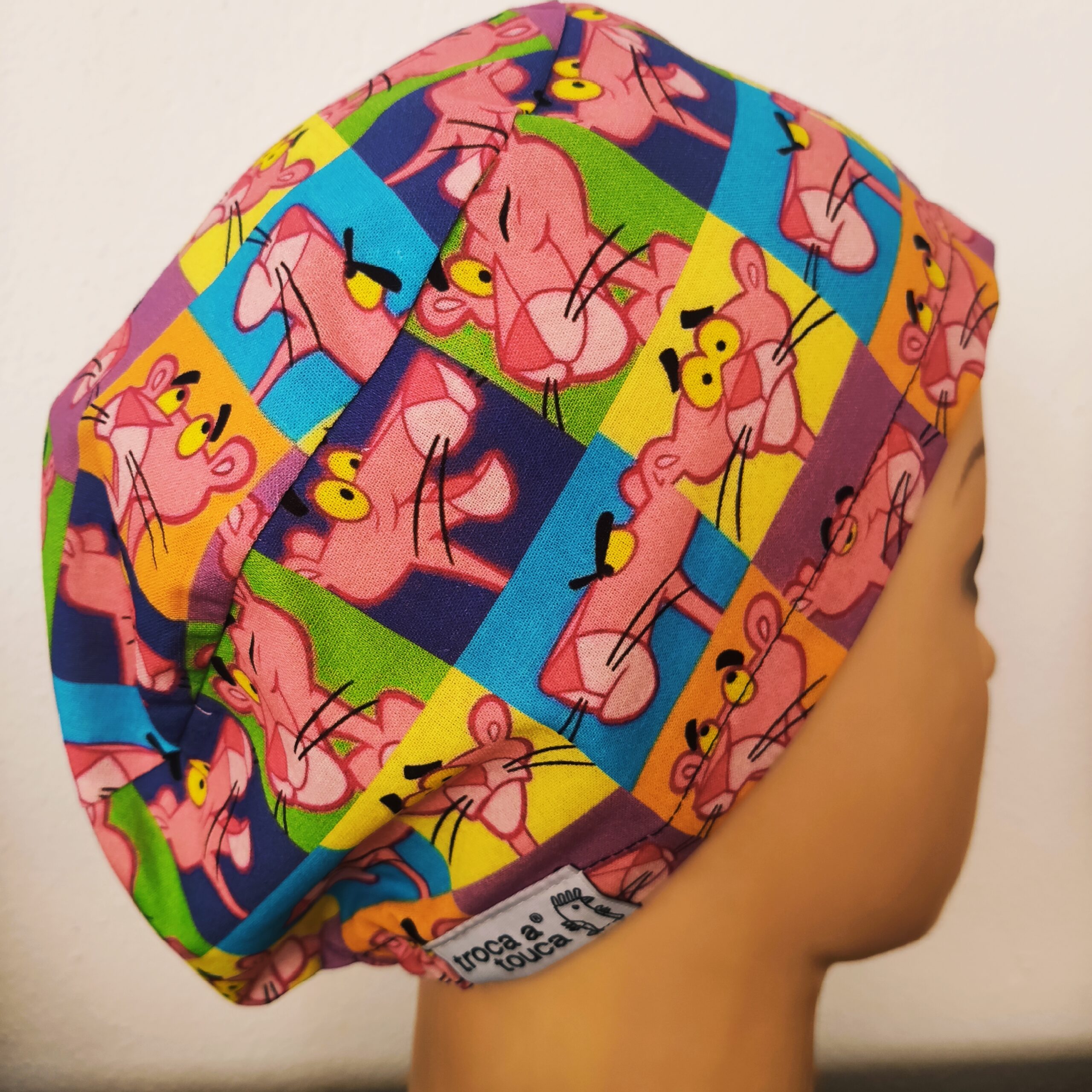Touca cirúrgica cartoons elástico. Pantera cor-de-rosa.