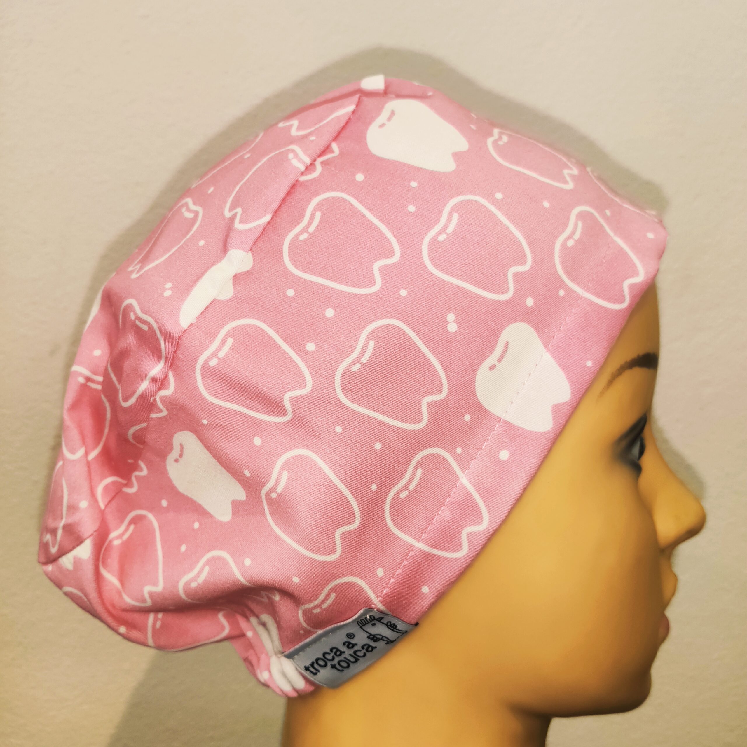 Touca 100% algodão, reutilizável e feitas à mão.