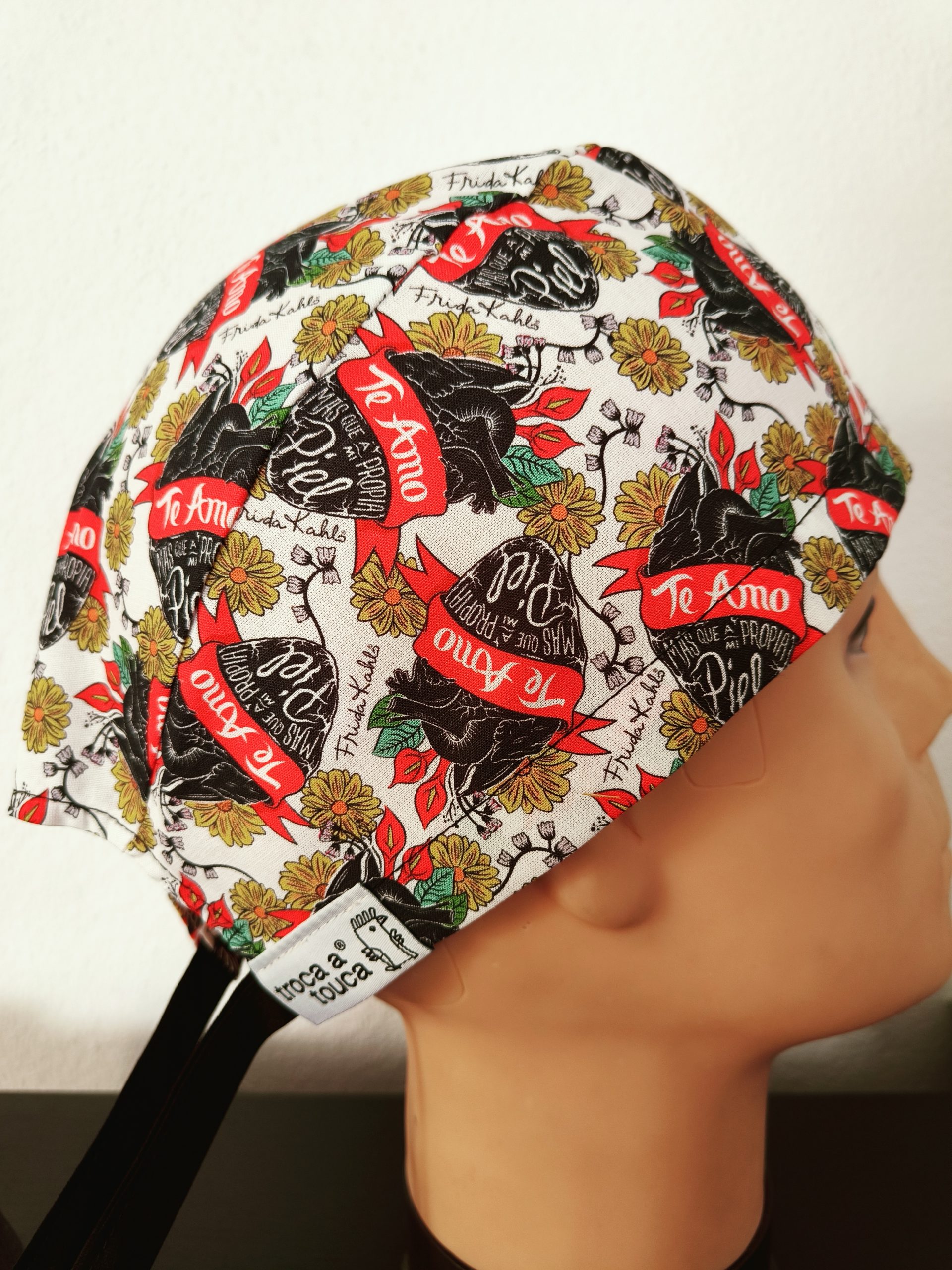 Touca 100% algodão, reutilizável e feitas à mão.