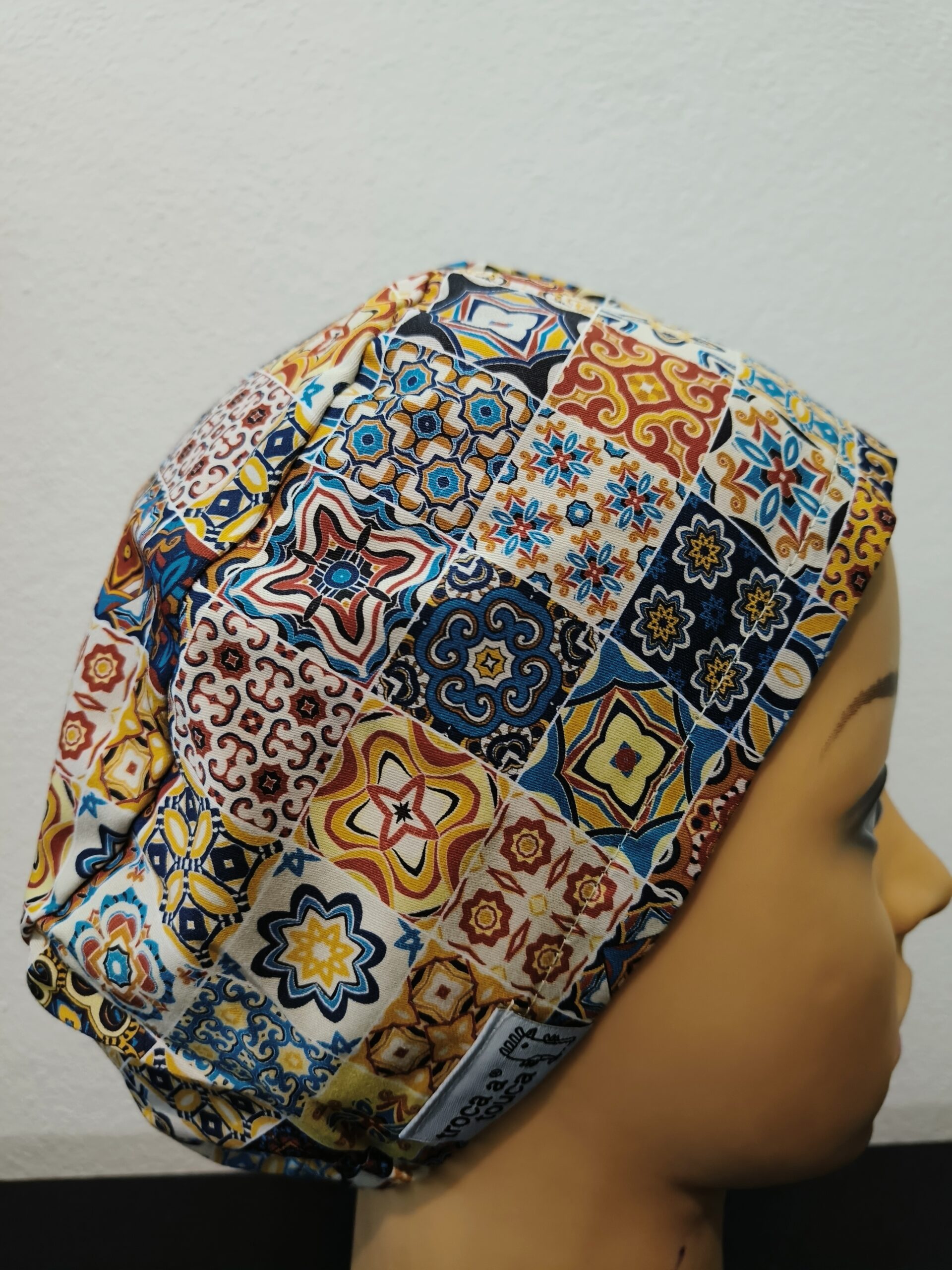 Touca 100% algodão, reutilizável e feitas à mão.